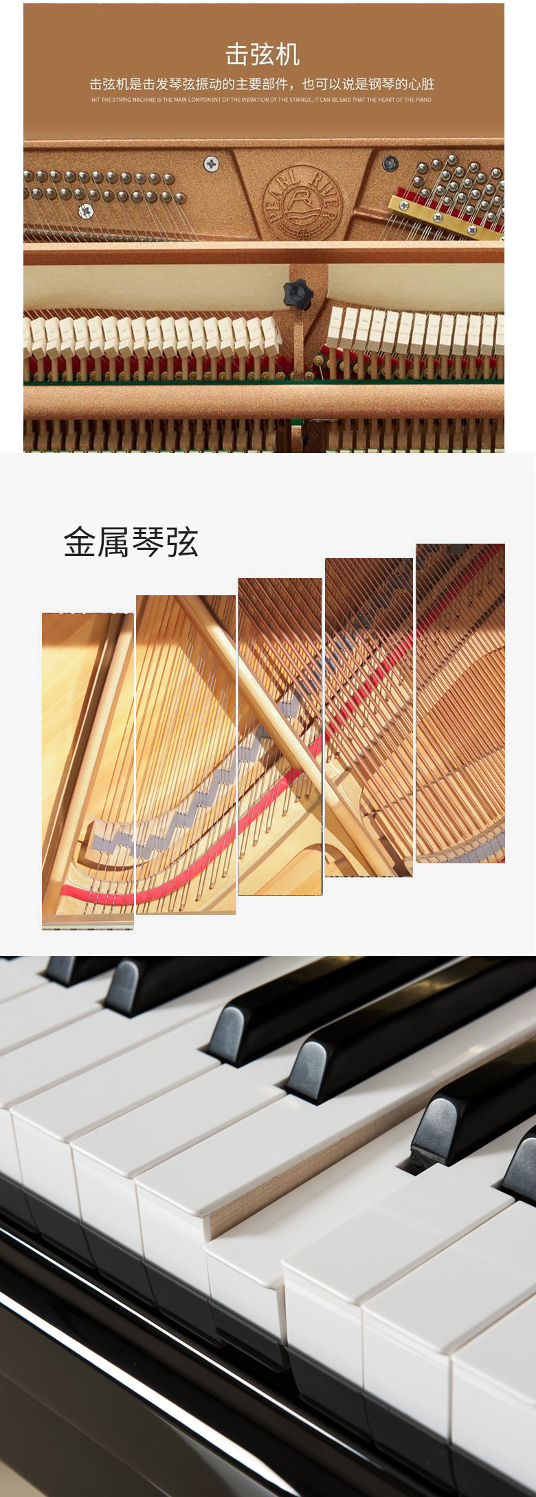 外觀優(yōu)美 外殼選用特殊處理中纖板芯,穩(wěn)定性和耐久性更強(qiáng);飾以優(yōu)質(zhì)涂料,更顯傳統(tǒng)華貴。 制作工藝精良,主題邊緣弧面裝飾,獨(dú)具時代氣息。 傳統(tǒng)的鋼琴制作工藝與現(xiàn)代科技結(jié)合的精湛工藝,音色與外觀更具人性化。 |